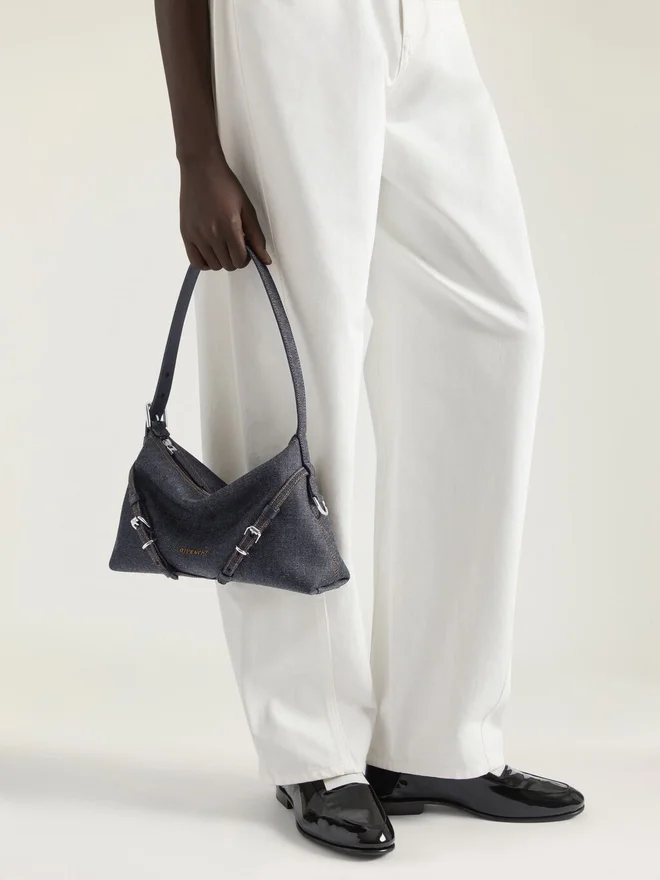 Mini borsa a tracolla in denim con cuciture a contrasto.Linea Voyou.Chiusura con cerniera.Tracolla regolabile per il trasporto a spalla.Ricamo con la firma Givenchy sul davanti della borsa. Toppa Givenchy Paris all’interno. Fibbie in metallo con incisione Givenchy. Dettagli in metallo con finitura argentata. Un unico scomparto principale. Fodera in tela.ColoreBlu indacoComposizione100% cotoneDimensioni28 cm x 19 cm x 9 cmLunghezza tracollaMin: 8.7 In