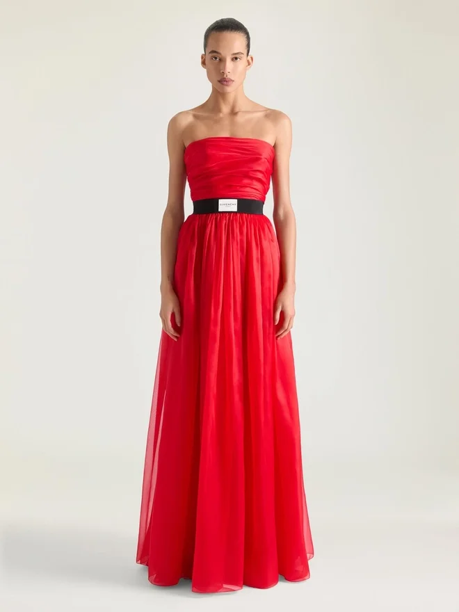 Un codice Givenchy: il bustier viene reinterpretato in diverse silhouette, utilizzando tecniche sartoriali strutturali per definire la forma femminile. Abito da sera lungo a bustier in organza. Drappeggiato. Corsetto integrato.Cintura in gros-grain non rimovibile con etichetta Givenchy ricamata. • Chiusura con cerniera invisibile sul lato. • La modella è alta 1,77 m e indossa una taglia 36. D ColoreD VermiglioD ComposizioneD 100% seta.D Materiale secondarioD 76% poliammide, 24% elastan.D FoderaD 73% acetato, 27% seta.D CuraD Non lavareD Stirare alla massima temperatura della piastra (110 °C) senza vaporeD Non asciugare in asciugatriceD Non candeggiareD Lavaggio a secco con idrocarburiD Materiale secondario: 76% poliammide, 24% elastan. Fodera: 73% acetato, 27% seta.CuraNon lavareStirare alla massima temperatura della piastra (110 °C) senza vaporeNon asciugare in asciugatriceNon candeggiareLavaggio a secco con idrocarburiPaese di origine: FranciaCodice prodotto: Bw22Fd1636-640 Informazioni sulla cura: i nostri laboratori progettano con audacia e creatività capi unici, realizzati con materiali di alta qualità. Per preservare la brillantezza del tuo prodotto Givenchy, ti consigliamo di riporlo in una custodia in cotone e in un luogo fresco e asciutto. Per la maggior parte dei nostri prodotti è consigliato il lavaggio a secco. Assicurati di seguire le istruzioni di cura riportate sull’etichetta del tuo articolo. Non esitare a visitare la nostra pagina dedicata o a contattare direttamente i nostri team Givenchy se desideri ulteriori informazioni.Non lavareStirare alla massima temperatura della piastra (110 °C) senza vaporeNon asciugare in asciugatriceNon candeggiareLavaggio a secco con idrocarburi