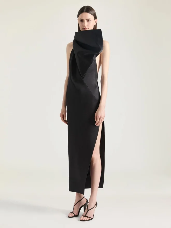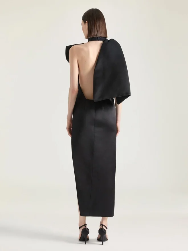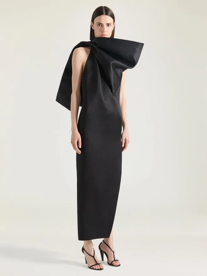 Abito da sera in raso con dettaglio fiocco