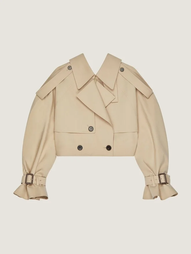 Trench in cotone. Colletto con revers. Lacci di regolazione sui polsini e sulle spalle. Fodera a contrasto.Cropped Fit. La modella è alta 1,77 m e indossa una taglia 36. D ColoreD Beige/BurroD ComposizioneD 100% cotone.D CuraNon lavareNon stirareNon asciugare in asciugatriceNon candeggiareNon lavare a seccoPaese di origineItaliaCodice prodottoBw00Uv164R-923