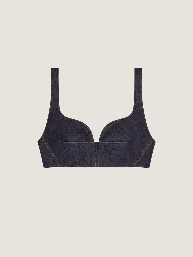 Top a reggiseno in denim grezzo